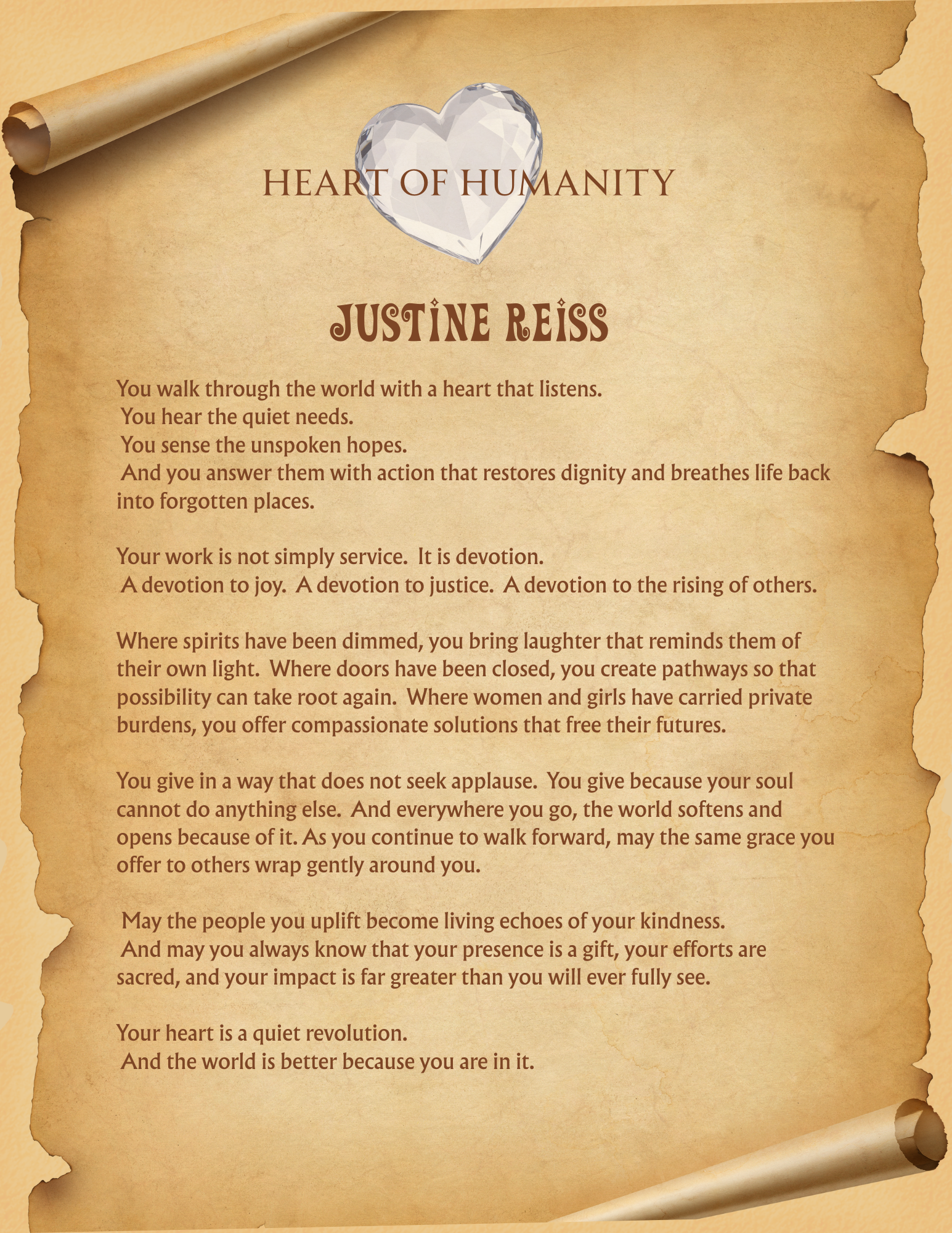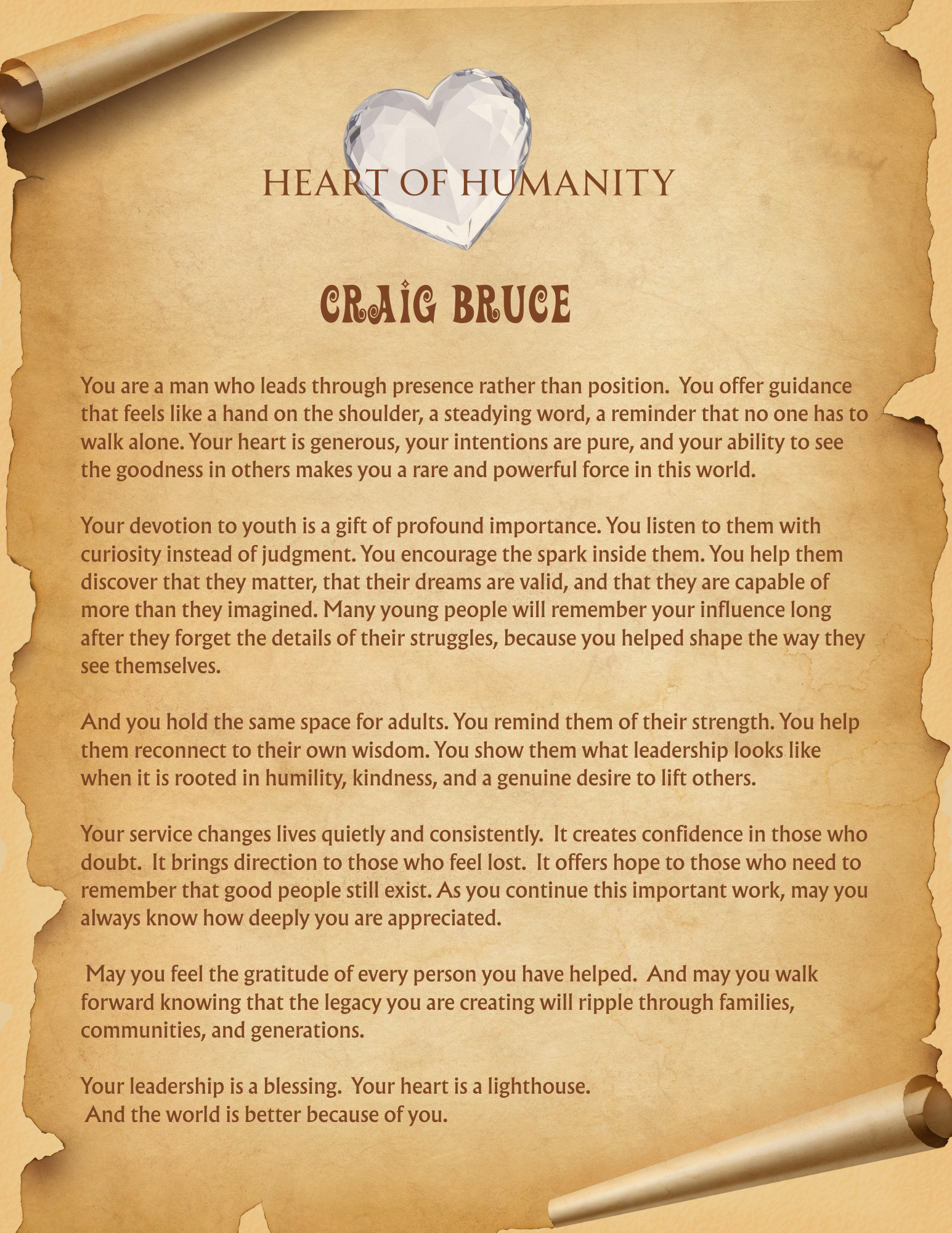 Each winner received a beautifully crafted certificate honoring their contribution, along with a personalized scroll that shares the heartfelt reason they were chosen. To experience their story, simply click on the scroll and let it unfold before you.
